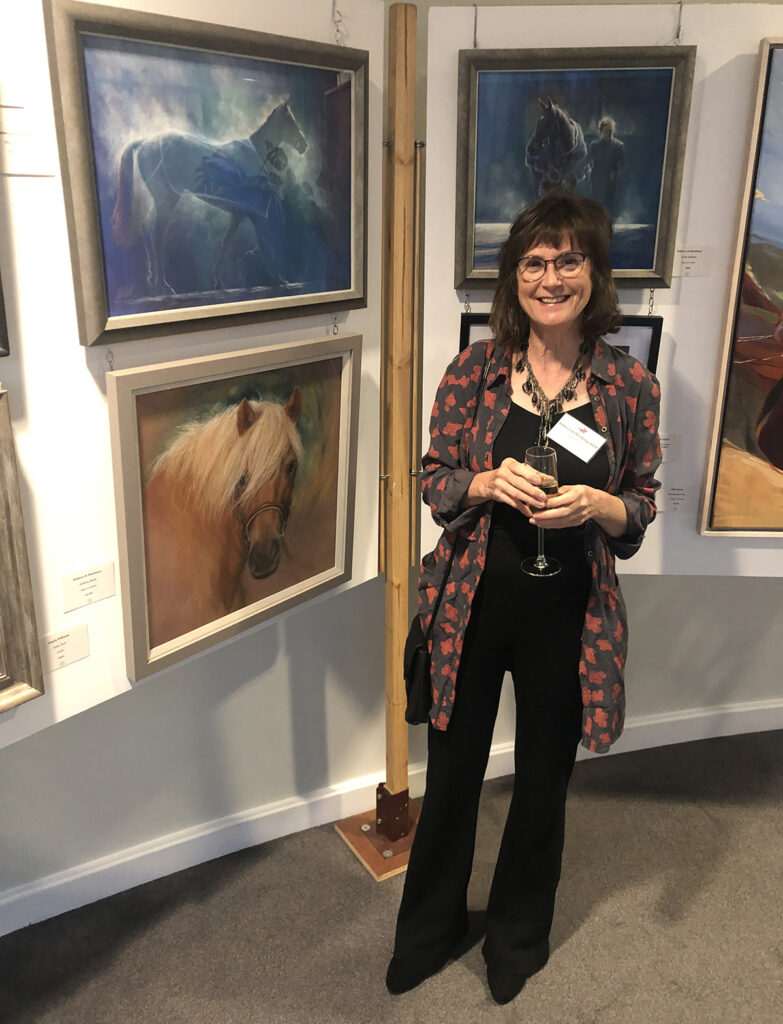 The final task was to submit a portfolio to be judged by existing Full Members when I delivered my paintings for the annual Horse in Art Exhibition last week. And this photograph shows me celebrating the news that I had been accepted, which of course involved a glass of bubbly!