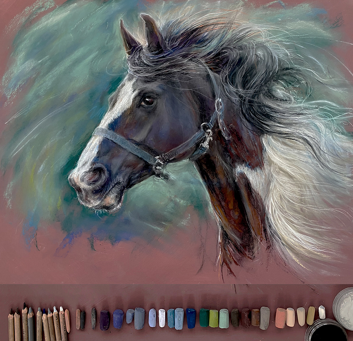 Join us for a live zoom pastel workshop to capture the movement and energy of a piebald horse cantering past. This guided workshop will be full of tips and techniques for drawing and painting;